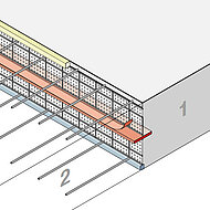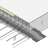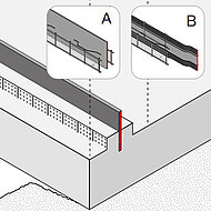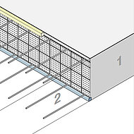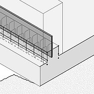 Stremaform® Arbeitsfugenabstellungen teilausgesteift für Einbaumaß bis 500 mm in Platten und bis 300 mm in Wänden und ausgesteift für Einbaumaße >500 mm - 2000 mm in Platten und >300 mm - 1400 mm in Wänden hergestellt. Der Einbau der passgenauen Elemente erfolgt zwischen den Bewehrungslagen in Platte oder Wand.
