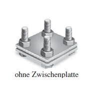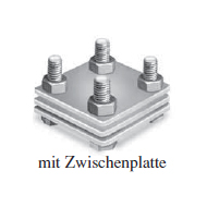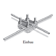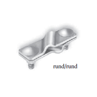 100150 | V4A, 2-teilig, rund/rund Klemmbereich Ø 8 – 10 mm, M10 mit Flachschraube und Verdrehschutz | 50 Stück | 4,50 kg Karton |