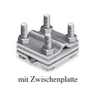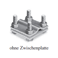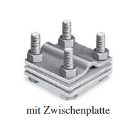 100149 | V2A, 2-teilig, rund/rund Klemmbereich Ø 8 – 10 mm, M10 mit Flachschraube und Verdrehschutz | 50 Stück | 4,40 kg Karton |