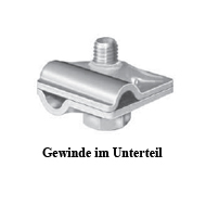 100153 | Aluminium, 2-teilig, rund/rund Klemmbereich 8 – 10 mm Schraube NIRO M10 Gewinde im Unterteil | 50 Stück | 2,90 kg Karton |
