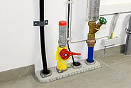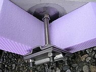 Für den nachträglichen Einbau in bestehende Wände mit Perimeterdämmung. Die Abdichtung zur Wand erfolgt beidseitig über eine Flächendichtung, die mit Muttern zur Wand verpresst wird. Über eine Anschlusslasche mit Kreuzklemme können Flach- bzw. Rundstähle angeschlossen werden.
